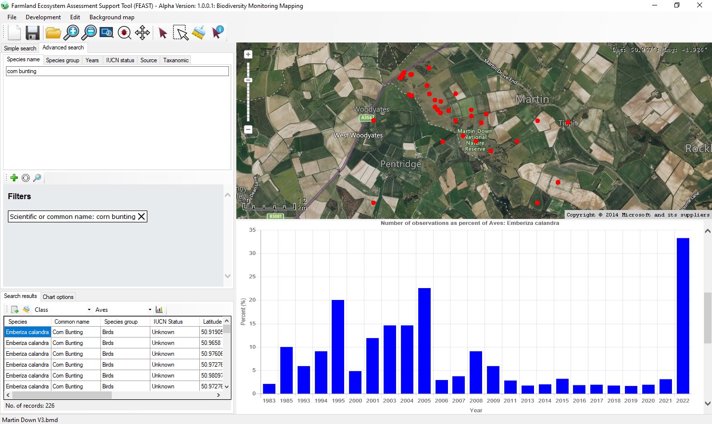 A core part of the FEAST software was initially developed for the EFA Calculator project. This contained qualitative and semi-quantitative metrics to assess the potential impact of different features (defined as EFAs under the CAP) on ecosystem services and biodiversity. This software was then extended to incorporate the outputs of the QuESSA project, which included several metrics that quantified ecosystem services. The FEAST software is now being developed to meet the needs of the FRAMEwork project. This includes harmonising and extending the indicators for ecosystem services and biodiversity; and developing functions to support the work undertaken in the farmer clusters, including accounting for landscape configuration and habitat complementation.