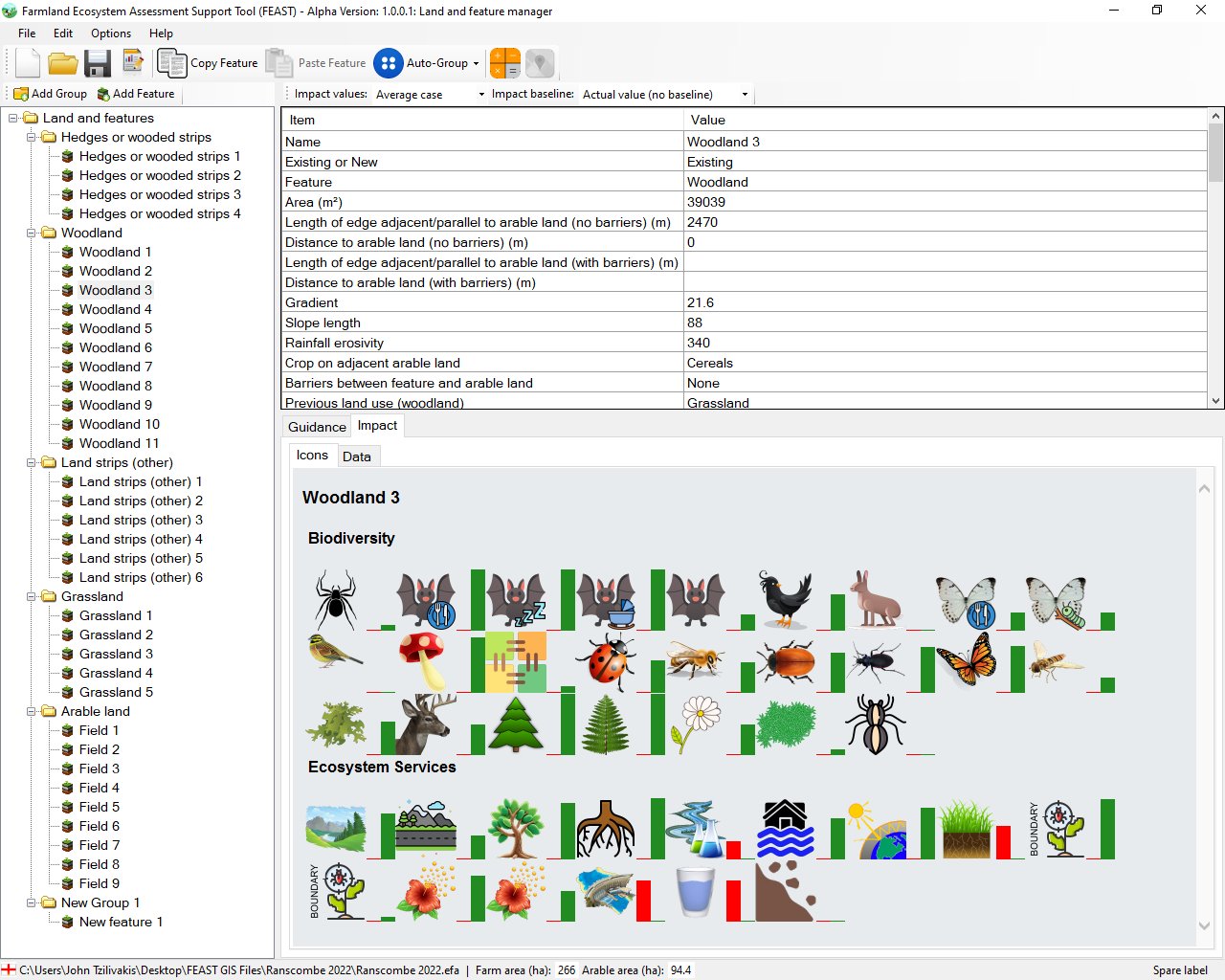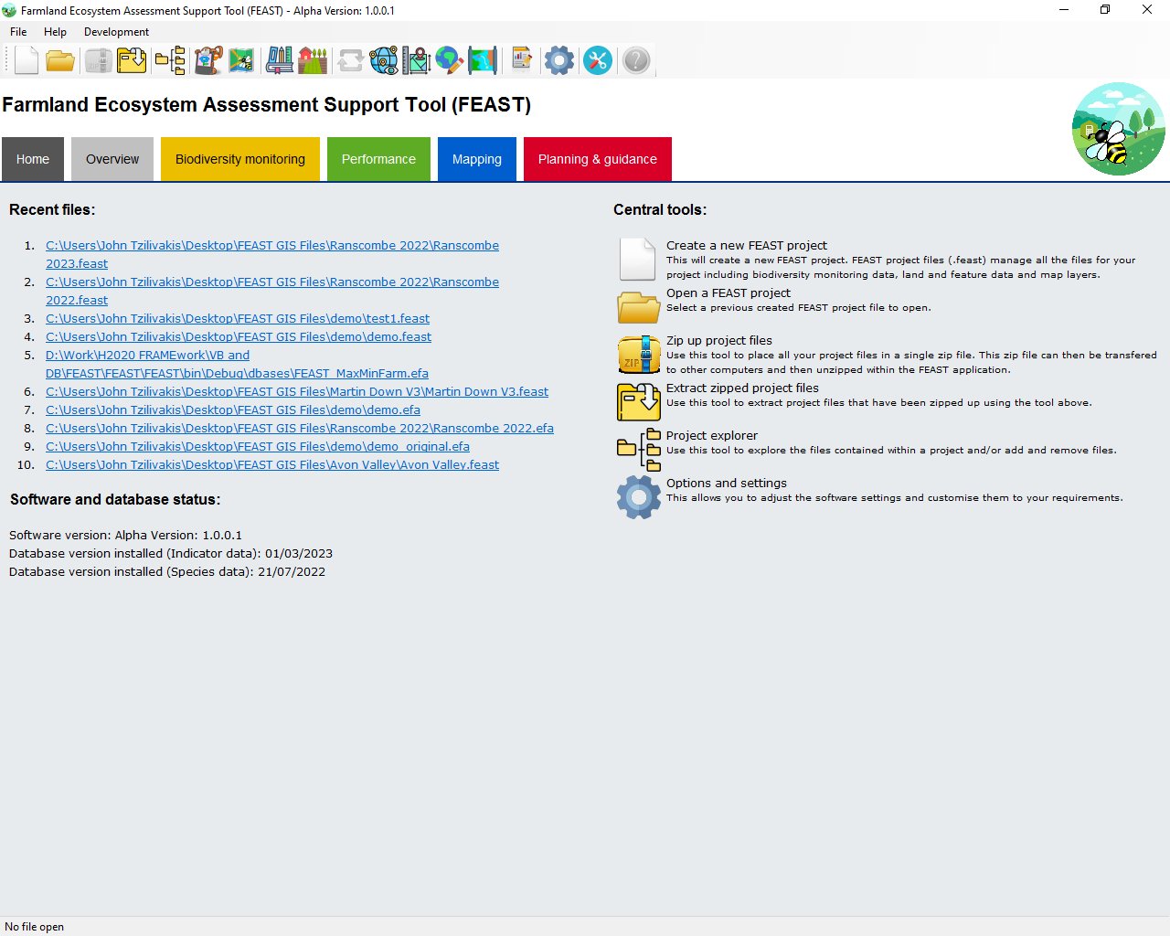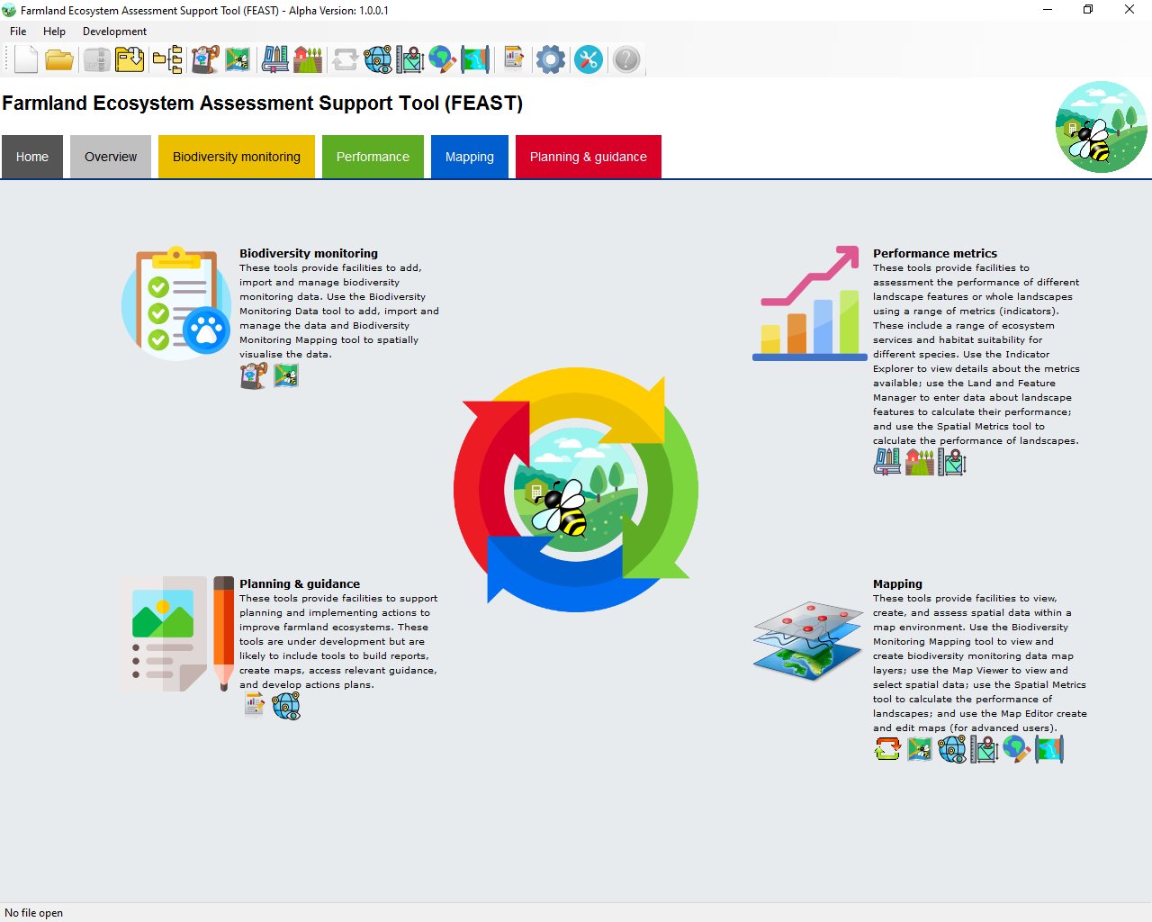 The FEAST software is a prototype tool that is being designed and developed to support the process of assessing farmland landscapes with respect to their potential effects on ecosystem services and biodiversity. The tool integrates a range of indicators (metrics) from several European projects including:
